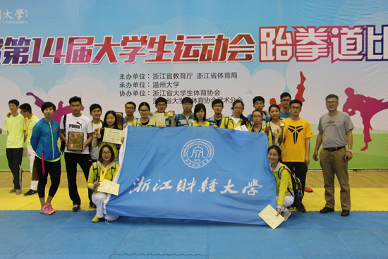 我校跆拳道队的13名队员在领队和教练的指导下,顽强拼搏,沉稳镇定,较好地发挥了自己的竞技水平。经过激烈角逐,最终斩获男甲74KG组冠军、女甲49KG亚军、女甲57KG季军的好成绩。同时,经过领队、教练和全体运动员的共同努力,获得了“体育道德风尚奖”的称号,徐斌峰同学还获得了“优秀运动员”称号,为学校争得了荣誉,也向浙江各高校展现了我校学子顽强拼搏的体育风貌。