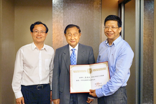 校党委书记陈根芳亲切会见了高尚全教授一行,并为其颁发了我校兼职教授及中国金融研究院研究员聘书。