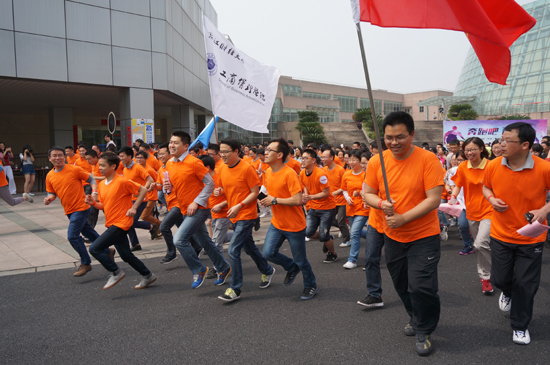 随着一声令响,环校跑活动正式开始。浩浩荡荡的几百人越过起跑线,开始自己的“五四征程”,给人以青春朝气之感。历时一小时左右,尽管汗流浃背,但却依旧能在每一位教职工的脸上寻找到那一抹最亮丽的笑。正如活动的四个主题板块“誓青春之歌”“圆青春之梦”、“烙青春之印”、“书青春之名”的表述,它们告诉大家:青春不老,梦想不灭!