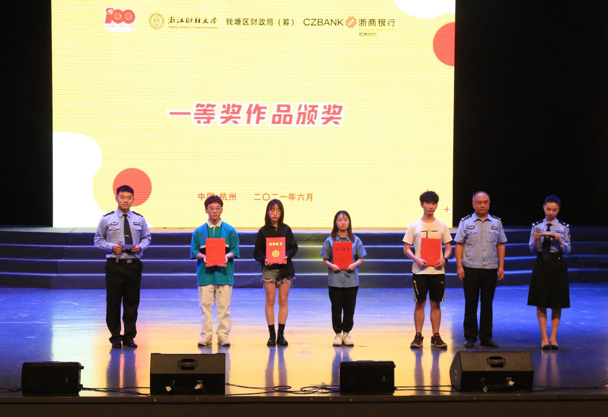 在现场教育大会上,校保卫处处长郑纪达和杭州市公安局钱塘分局经文保(国保)大队教导员张思洋分别作了校园反诈形势分析和反诈知识宣讲。第七届中国曲艺最高奖(牡丹奖)得主方剑林老师带来了自编反诈节目——莲花落《蝇头小利》,来自校内的师生代表演绎了精彩的反诈作品《遥遥归家路》《“诈”裂》《和“客服”的对话》。