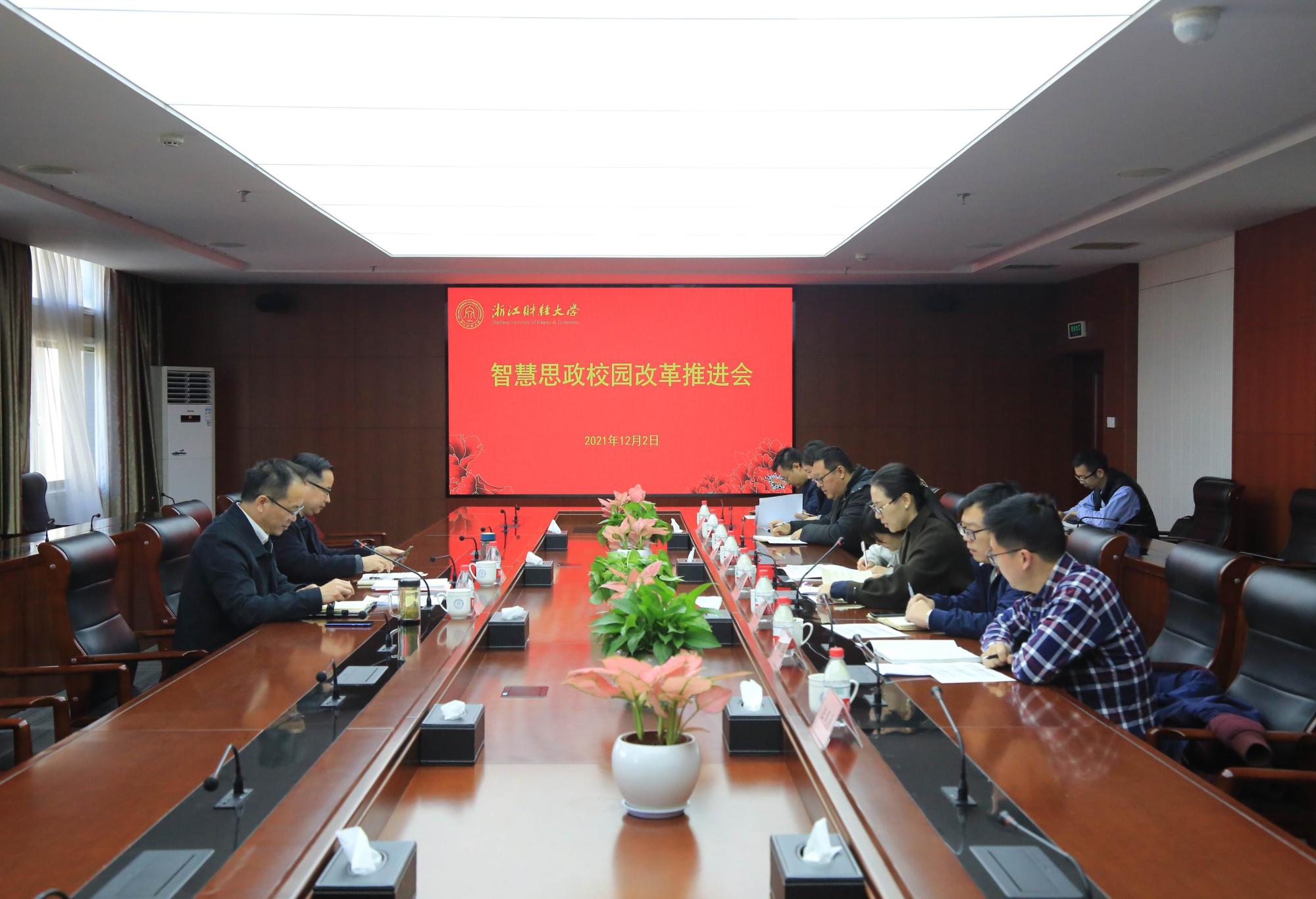 本网讯 12月2日上午,学校召开智慧思政校园改革推进会。校党委副书记余建森主持会议,党委委员、宣传部部长楼胆群,党校办、宣传部、学工部、校团委、教务处、信息办负责人参加会议。