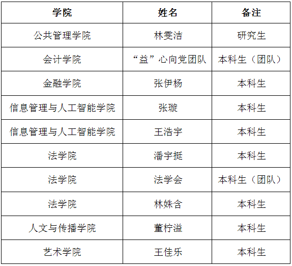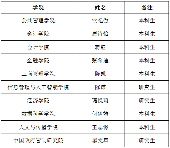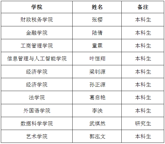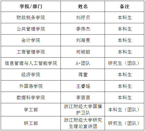 浙江财经大学2021年十佳大学生暨首届大学生年度人物获得者名单