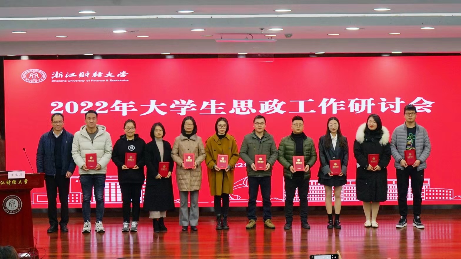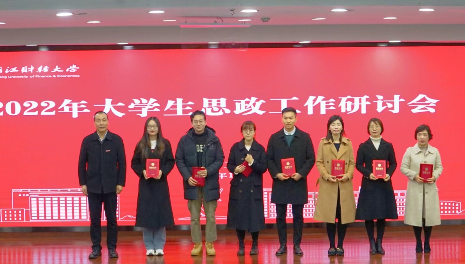 楼胆群为“大学生思政工作研讨会”论文征集三等奖获得者颁奖