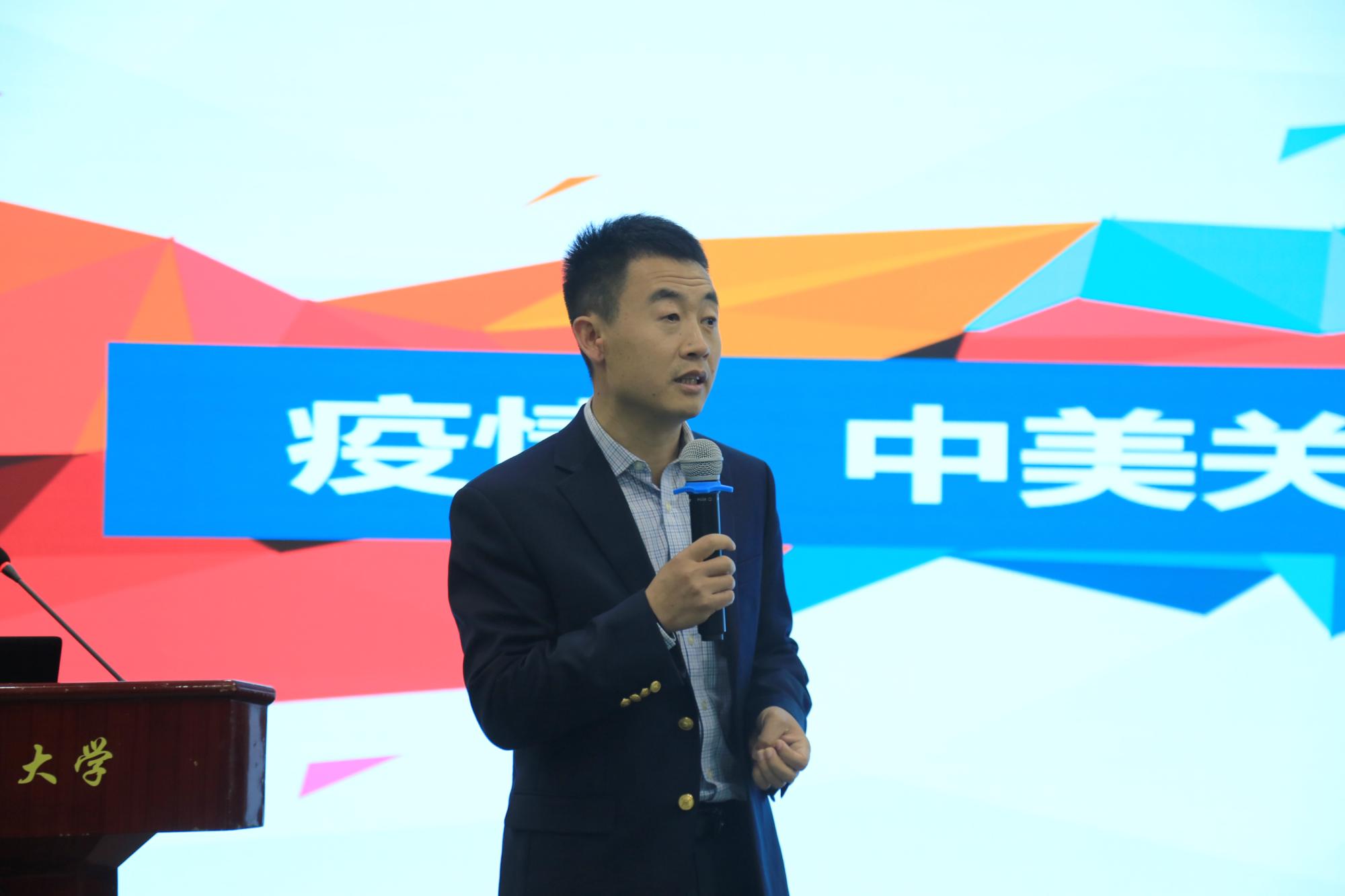 经济学院邵慰教授以《疫情、中美关系与经济形势分析》为题,从中国经济中短期形势、全球经济形势、疫情后的中美关系、中国经济面临的挑战等四个方面,阐述了他对当前宏观经济形势与政策的思考和判断。课程主题明确、内容详实、视野开阔、信息量大,让大家对当前国家经济发展形势有了更深入的了解。