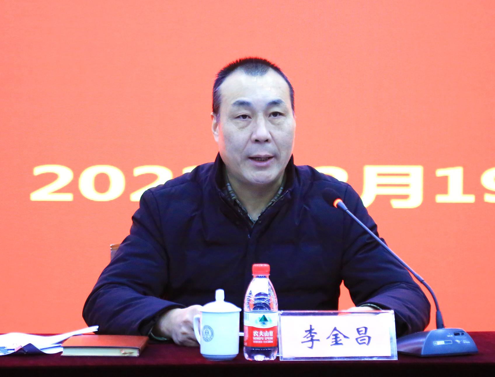 本网讯 2月19日,学校召开中层及以上干部会议,部署2022年度工作。校领导班子成员、全体中层干部参加会议。会议由校党委书记李金昌主持。