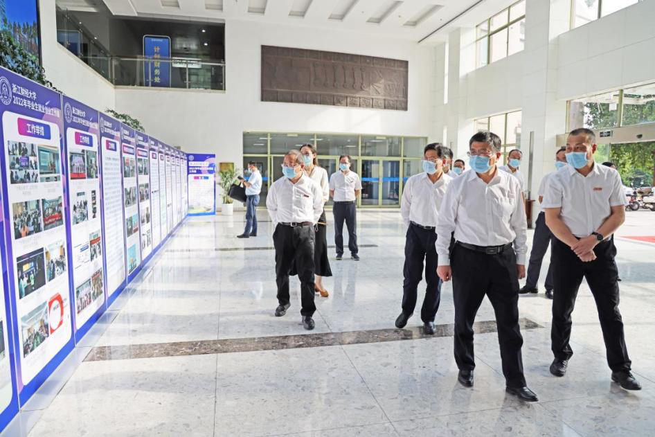 成岳冲一行实地走访了生活园区大学生就业指导中心园区工作站,参观了学校2022年毕业生就业创业成果展,了解了大学生就业服务工作开展情况和就业创业工作情况。