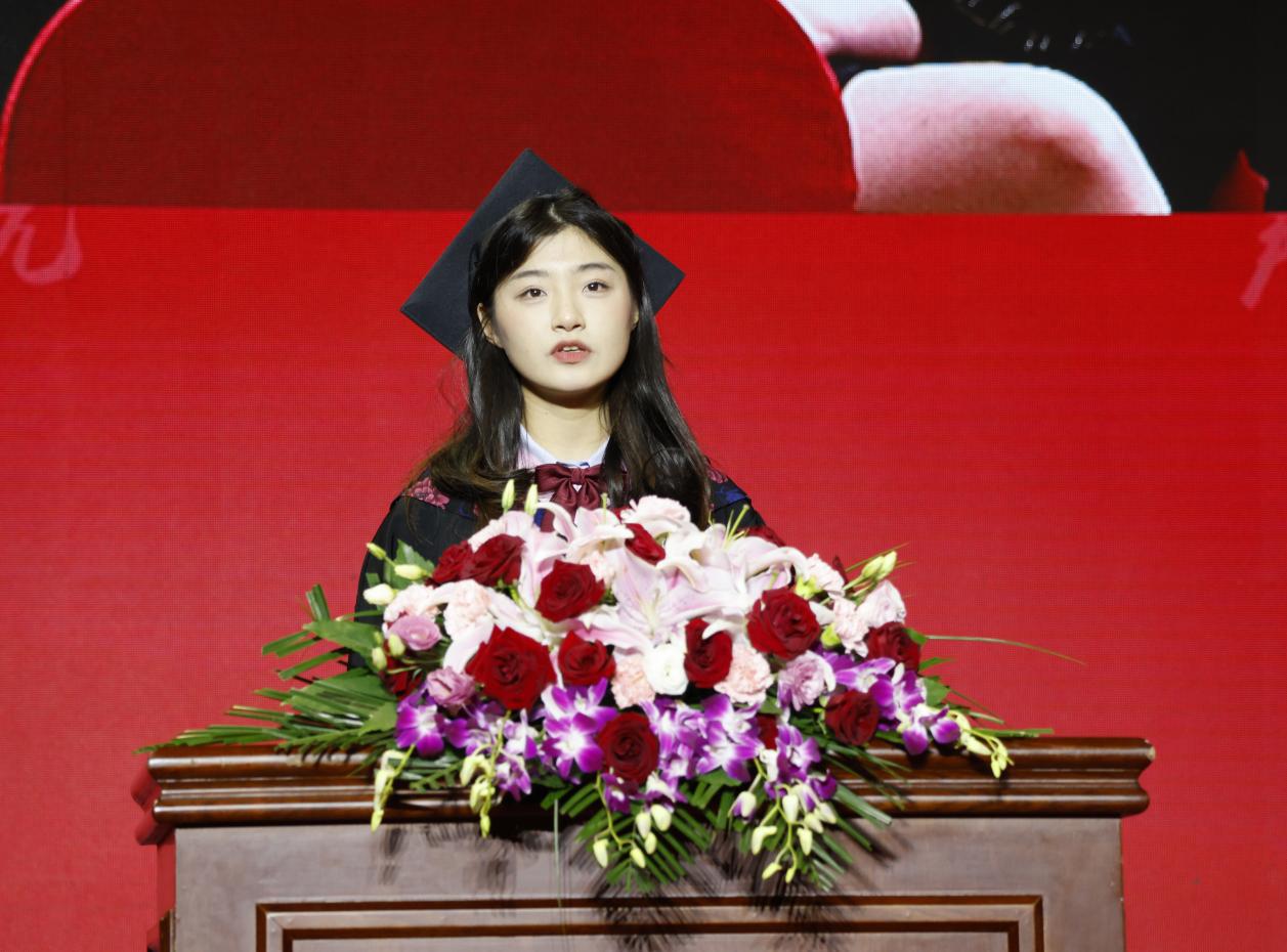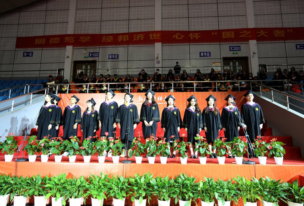 毕业生代表、艺术学院2018级环境设计2班郭泓文同学表示以浙财青年的身份毕业,要始终不忘浙财志气、不忘浙财骨气、不忘浙财底气。