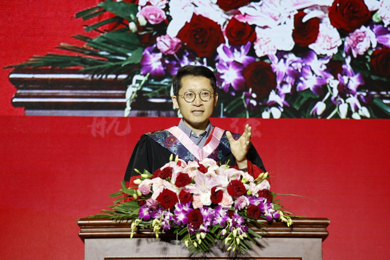 教师代表、经济学院唐要家教授希望同学们毕业后,做一个发光的人,不放纵不自私,为他人无私奉献,为更多人带来福祉,给他人以信心、温暖,用爱点亮世界。