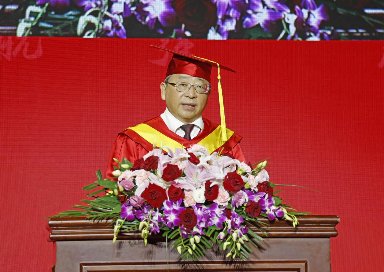 校党委副书记、校长钟晓敏在题为《逐梦新征程 一起向未来》的致辞中表示,2022届毕业生乘势而上,奋斗其时,始终以青春之名与伟大时代同行。回首四年大学时光,同学们努力克服疫情带来的困难,践行求学初心,收获专业知识,拓展视野格局,增长才干能力,强健体魄身心,磨砺意志品格,始终无悔拼搏遇见最好的自己。钟晓敏深情勉励毕业生们,逐梦新征程,一起向未来,当以担当之责,胸怀家国。要心怀“国之大者”,将国之所需、民之所向作为人生的奋斗航向,在今后工作的各个领域中都勇挑时代重担,以聪明才智贡献国家,以开拓进取服务社会。逐梦新征程,一起向未来,当以坚韧之心,开拓创新。希望毕业生坚持创新理念,秉持创新思维和能力,始终对自己生活半径之外充满好奇,对新领域新事物保持学习向往,通过深度学习、深度思考、深度工作,突破固有思维,冲破认知局限,不断积累人生智慧,实现人生价值。逐梦新征程,一起向未来,当以奋斗之姿,笃行实干。希望毕业生不驰于空想,不骛于虚声,以奋斗者的脚步、以实干家的态度扎根向下、埋头苦干,把未来发展的基石打深、打牢,不断向上成长,在行胜于言中创造新业绩,成就人生新高度。最后,他祝愿大家毕业快乐,鹏程万里、前程似锦!