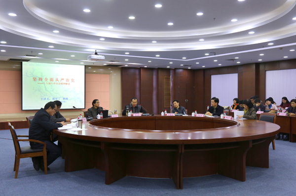 党委理论中心组成员卢新波、黄建新,中层干部代表张美华、冯睿、王聪等5位同志在会上作了交流发言。大家一致表示,将继续深入学习六中全会精神,认真贯彻掌握《准则》和《条例》,把学习贯彻与具体工作实际结合起来,做到内化于心、外化于行。