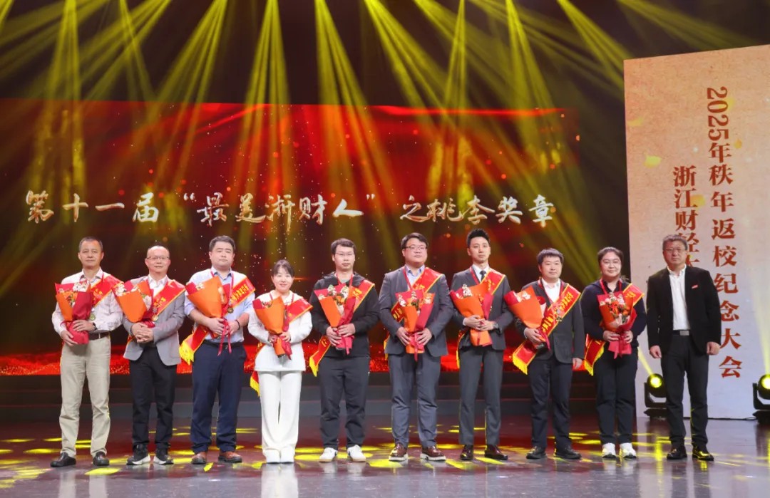 魏江为到场的9位校友颁发第十一届“最美浙财人之桃李奖章”。除此之外,在他们中,还有远在边疆的援疆干部和坚守湘西的人民公仆。不论身处何处,他们拼搏、创新、超越、反哺,每一位都是浙财精神的践行者。今日之荣誉,正如涓流汇海,映照出浙财人最动人的模样。