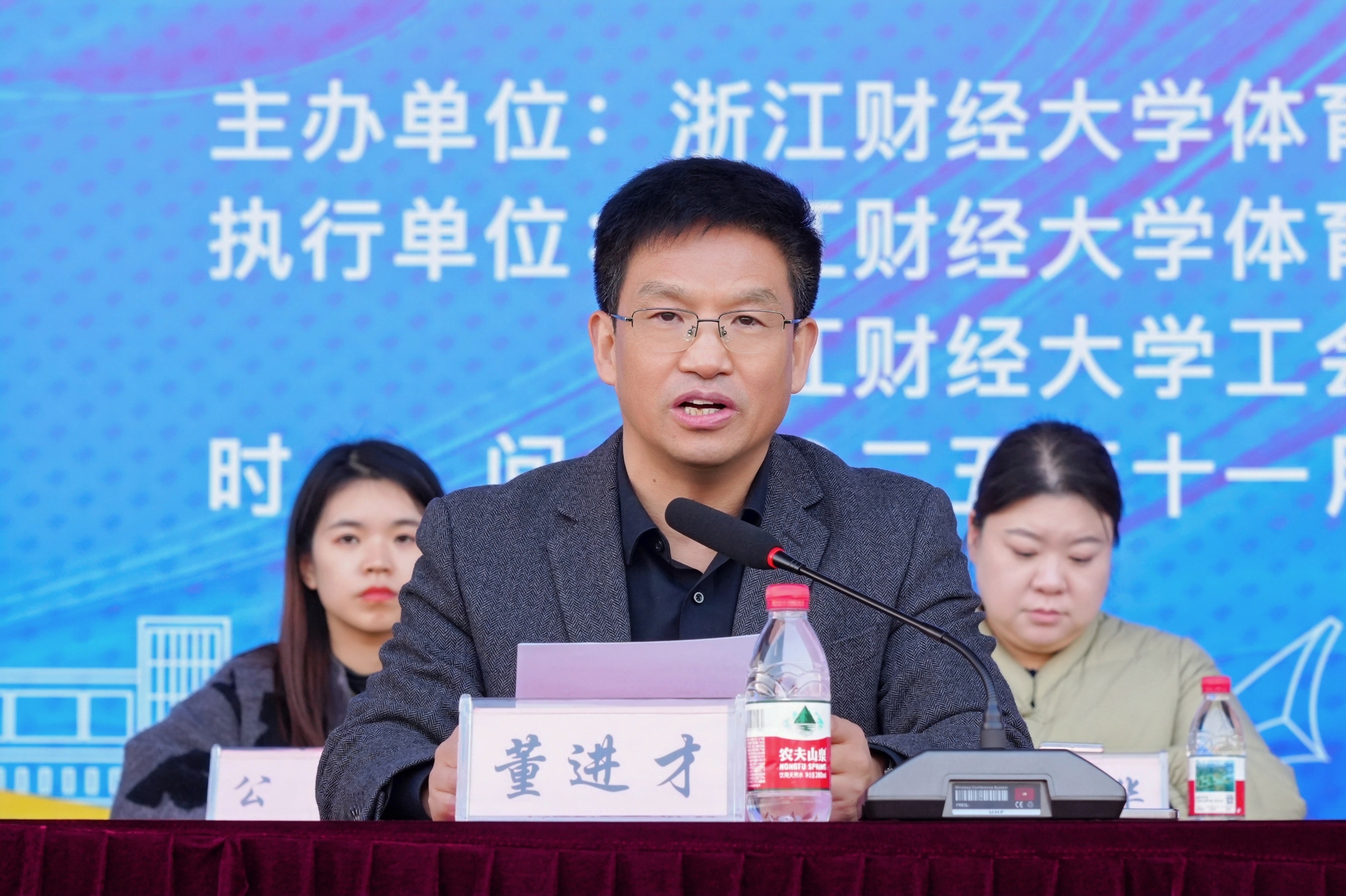 校党委副书记徐晓东致开幕词。他表示,学校体育是实现立德树人根本任务、提升学生综合素质的基础性工程,对实现德智体美劳全面发展、培养“K+MAQ”型中流砥柱型人才具有十分重要的促进作用。学校始终秉持“以德树人、以体育人”的教育理念,形成了重视体育、崇尚健康的良好风尚。无论是群众性体育活动,还是高水平竞技体育,都获得了不俗成绩,充分展现了新时代浙财人积极向上、勇攀高峰的精神风貌,更是学校推进五育并举的具体实践。希望全校师生以本届运动会为契机,开展更加丰富多样的体育活动,以体育智、以体育心,不断擦亮“浙财体育”金名片,为建设特色鲜明的一流财经大学奠定更加坚实的基础。