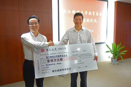捐赠双方签署了捐赠协议,党委书记陈根芳以及校长李金昌代表学校接受了捐赠支票,为捐赠者颁发了捐赠证书、纪念杯,并为王小坚校友颁发了学校兼职教授、社会导师的聘书。