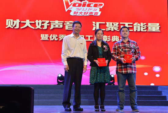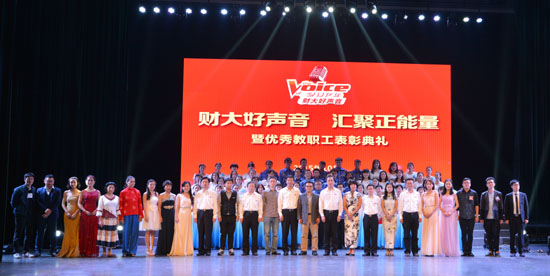 为深入推进“正作风、树教风、抓学风”主题教育,进一步弘扬优良师德师风,团结凝聚财大力量,营造集体干事创新创业的良好氛围,唱响不同时代、不同形式的“好声音”,10月27日下午,学校举办了第三届“财大好声音•汇聚正能量”暨优秀教职工表彰典礼。陈根芳、李金昌、钟晓敏、卢新波、陈金方、王奎泉、徐晓东等及各职能部门和各学院负责人亲临现场,与千余名教职工欢聚一堂,共同观看了这场音乐盛会。