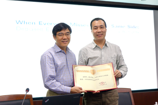 学校聘请范剑青教授为我校兼职教授、中国金融研究院特聘研究员,校长李金昌为其颁发了证书。