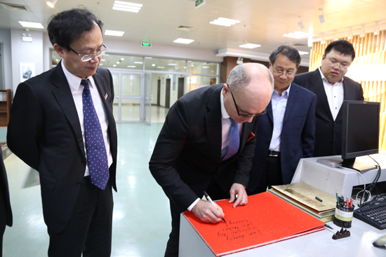 哈斯勒教授在校领导的陪同下兴致勃勃地参观了财大校园和我校诺贝尔经济学奖文库。他对我校诺贝尔经济学奖文库给予了高度评价,认为该文库全面、系统地收集并展示了诺贝尔经济学奖获奖者的学术文献,以印刷型、数字化、视频资源等形式提供给读者,内容丰富、形式多样、信息量大,其系统性、连续性在全球范围内是独一无二的,很好地为广大经济学爱好者提供了丰富而系统的学习研究文献。