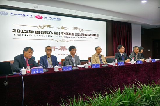 10月30日至31日,2015年第六届中国语言经济学论坛在我校下沙校区举行。来自全国30多所高校及科研机构的60多名专家学者参加论坛。北京语言大学党委书记李宇明教授为本届论坛发来了书面贺信,教育部语信司规划协调处易军处长、浙江科技学院党委书记王建华教授、浙江省语委办王振斌主任等出席开幕式。黄建新副校长致欢迎辞,教育部长江学者特聘教授、山东大学经济研究院院长黄少安教授致开幕辞。开幕式由人文学院院长何华珍教授主持。
