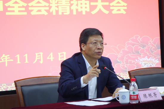 11月4日下午,我校举行传达学习贯彻党的十八届五中全会精神大会。校党委书记陈根芳作精神传达和专题辅导。大会由校党委副书记王宇航主持。