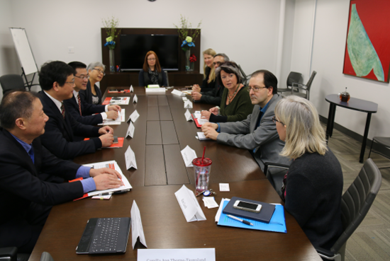 访问期间,温尼伯大学副校长尼尔·贝斯纳先生接见了我校代表团。双方就师资互派、学生交流、科研合作等方面达成了共识,并签署了两校合作协议。温尼伯大学商学院院长希尔维·阿尔伯特博士携各系主任与我校代表团就创新项目发展、课程建设合作、实践教学模式、东方学院应用型人才培养、项目合作等内容进行了广泛深入的探讨。