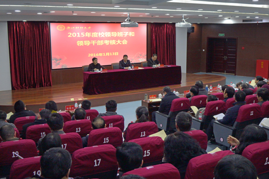 陈根芳代表学校党政领导班子作2015年度工作总结并报告个人述职述德述廉述法情况,校长李金昌作个人述职述德述廉述法报告,其他党政领导班子成员个人述职述德述廉述法情况以书面形式进行了报告。