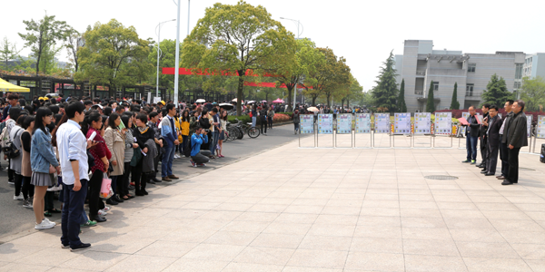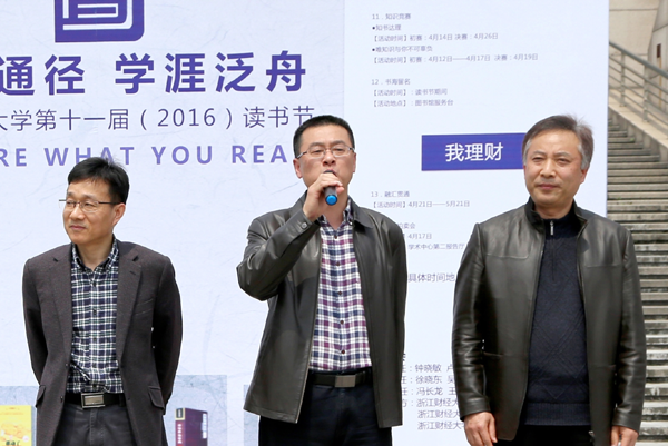 本网讯(通讯员 沈国弟)4月12日中午,学校第十一届(2016)读书节开幕式隆重举行。本届读书节以“书山通径 学涯泛舟”为主题,由图书馆、党委宣传部、金融学院联合举办。读书节倡导阅读从图书馆出发,人人争做有情怀的读书人,作为学校每年的一道特殊风景线,营造出了良好的校园读书氛围,已成为学校文化建设的重要平台。