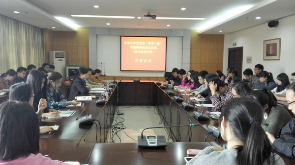 本网讯(通讯员 段雪辉)全省“两学一做”专题党课暨学习教育部署会日前在杭州召开。省委书记夏宝龙在会上讲专题党课。为进一步加强思想政治教育,引导广大师生党员深刻认识坚持党的领导、加强党的建设的重要性,尊崇党章党规,坚定理想信念,学校各级党组织开展了一系列丰富多彩的党建活动,努力营造“两学一做”浓厚氛围。