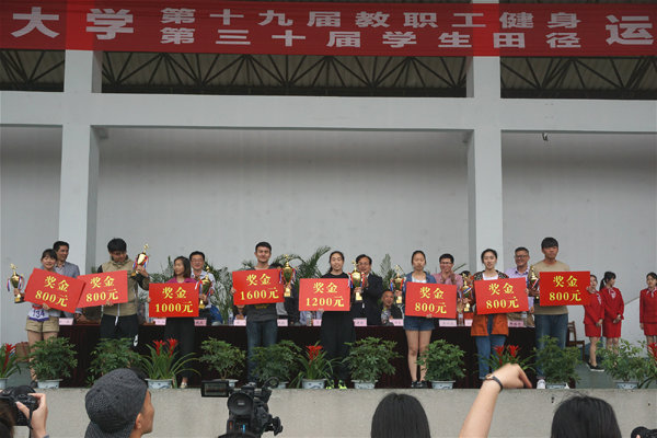 经过紧张激烈的角逐,机关三、法学院、金融学院分工会分列教职工健身运动会团体总分前三名,经济学院等8个分工会获“体育道德风尚奖”荣誉称号;会计学院、金融学院、工商管理学院分列学生田径运动会团体总分前三名。其中,会计学院俞佳萍、法学院王雨晴成功打破我校女子标枪的校田径最高纪录。财政税务学院等5个学院获 “体育道德风尚奖”荣誉称号,国际学院获“特别参与奖”荣誉称号。