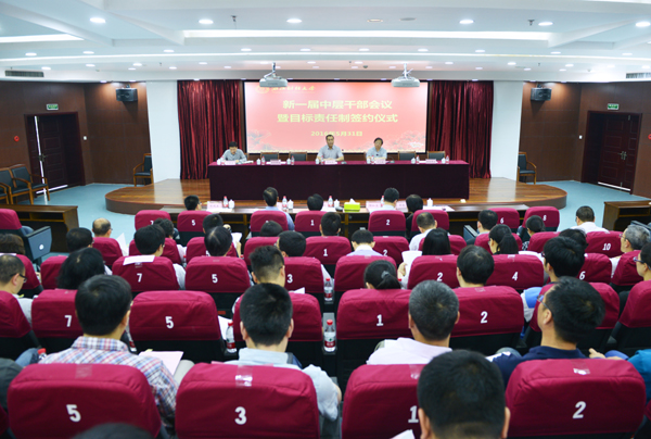 本网讯(通讯员 戴栗军 段雪辉)5月31日下午,学校在学术中心第四报告厅召开新一届中层干部会议暨目标责任制签约仪式。校党政领导班子成员、新一届全体中层干部参加会议。校党委副书记卢新波主持会议。