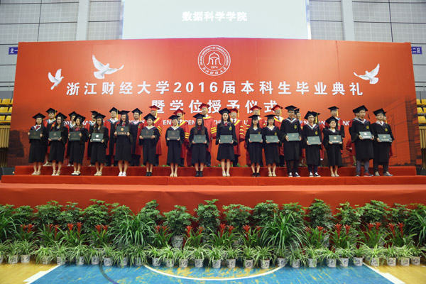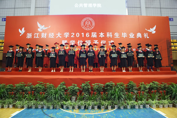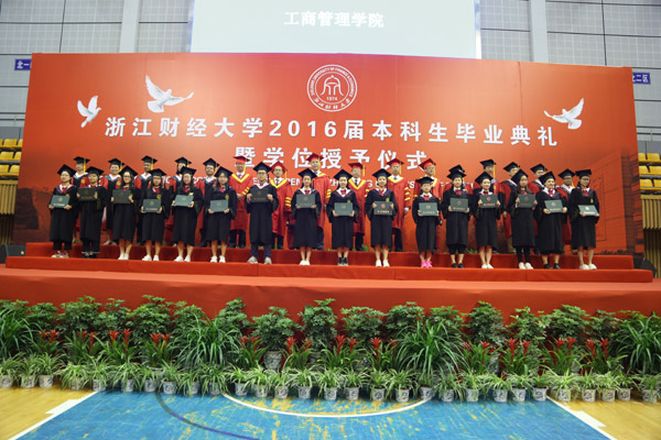 本网讯(记者 赵蕾)6月13日,学校在西体育馆隆重举行2016届本科毕业生学位授予仪式。李金昌、钟晓敏、黄建新、陈金方、励如孟、徐晓东等领导与各学院领导、导师代表和2016届全体本科毕业生出席了仪式。学位授予仪式共分为四场,由校党委副书记卢新波主持。