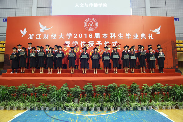 随后,毕业生们按照事先安排顺序依次上台,与学位委员会成员握手,接受“拨穗礼”后,表示感谢并拍照留念。