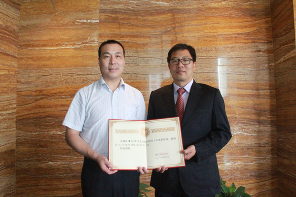 向潘向东博士颁发兼职教授聘书