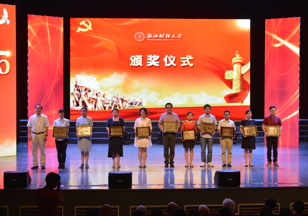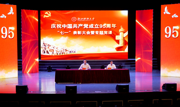 本网讯(记者 赵蕾)6月30日下午,浙江财经大学庆祝建党95周年表彰大会暨专题党课在文化中心剧场隆重举行。校领导,全体中层干部,离退休老党员代表、师生党员代表出席大会。大会由校党委副书记卢新波主持。