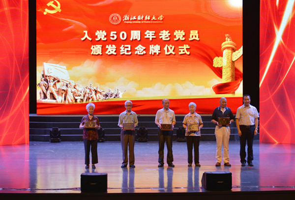 会上,5位入党50周年的老党员代表接受了李金昌书记颁发的入党50周年纪念牌。新党员代表在掌声中为老党员献花,老党员为新党员佩戴上了金灿灿的党徽。这象征着新一代浙财党员接过了一份沉甸甸责任,坚定理想信念,继承党的优良传统,为学校发展再续华章,再创辉煌。
