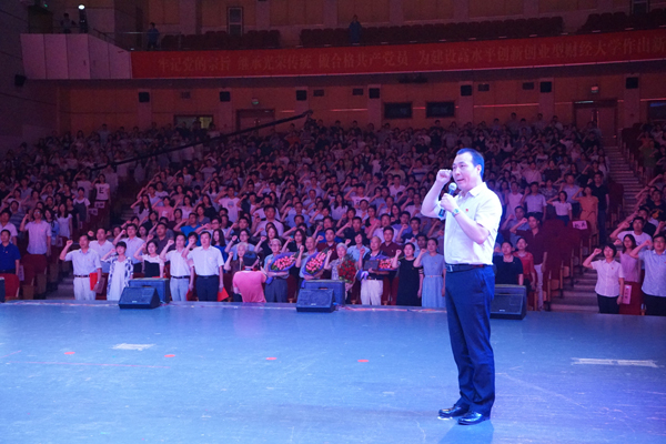 李金昌强调,“十三五”时期是学校必须牢牢把握的重大战略机遇期,面对新目标、新任务、新要求、新挑战,全校各级党组织和广大党员首先要牢记党的宗旨,坚持立德树人,努力办好人民满意的大学,全校教职工党员都要争做“立德树人”的表率,既要发挥专业教师在教书育人中的言传身教和身体力行,也要发挥管理人员、科研教辅人员、后勤服务人员等在管理育人、服务育人中的力量,帮助学生专业成才,精神成人。学生党员要做“德才兼修”的表率,既要努力学习专业知识,具备为人民服务的能力和本领,也要牢记社会主义核心价值观,有一颗为党的事业奋斗终身的决心。其次要继承党的光荣传统,弘扬党的优良作风,扎实推进学校建设与发展,要发扬党的“理论联系实际,密切联系群众,批评与自我批评”三大优良作风,同时要继承学校办学历史中形成的“勇于创新、志在一流、吃苦耐劳、无私奉献、团结协作、顾全大局”等精神品格,锐意改革、开拓创新,敢于碰硬、敢破难题,顺应发展大势、把握发展机遇、突破发展重点,实现跨越发展、后发赶超。三是全校党员要做“讲政治、有信念,讲规矩、有纪律,讲道德、有品行,讲奉献、有作为”的合格共产党员,为建设高水平财经大学作出新贡献。李金昌希望全校各级党组织和广大党员要以受表彰的先进集体和先进个人为榜样,凝心聚力、改革创新、攻坚克难、勇于担当,始终在学校事业发展中走在前列,在“两学一做”学习教育中作出表率!
