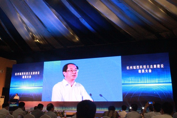 省委副书记、代省长车俊在会上指出,建设杭州城西科创大走廊是我省“十三五”期间既该干又能干成、对全省具有牵引性作用的大事,是贯彻落实中央和省委省政府关于科技创新一系列重大战略部署的具体行动,是补齐科技创新短板的关键抓手,是推动全省经济转型升级的重大举措。车俊强调,全省各部门要深刻认识科创大走廊在全省创新发展大局中的战略意义,全力以赴加快建设,力争早出成果、早出成效。