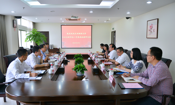 黄建新代表学校对来宾的到来表示热烈的欢迎,并从学校的发展历程以及近年来在推进国内一流、国际知名、特色鲜明的创新创业型财经大学建设等方面的工作介绍了学校的基本情况。双方围绕宣传载体和阵地建设、大学生思想引领和青马工程开展情况、创新创业和学术科技工作等方面进行了深入交流。