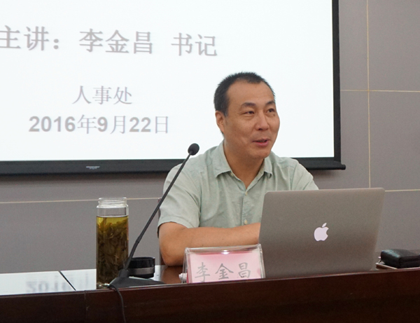 校党委书记李金昌以“争当一名优秀的高校教师”为题为新教师作了主题报告。“你是否热爱教师职业并努力将其作为自己的事业?你的讲课能否让自己感动?你是否在学生当中传播了正的能量?你的科研是否反哺了教学?你的课后工作是否延伸了?”围绕这五个问题,李金昌结合自己的从教近30年的经历进行了逐一回答,系统全面地阐述了如何成长为一名优秀高校教师的路径和方法,这既体现了学校对新进教师的殷切希望,也为新教师今后的成长指明了方向,让学员们深受启发。