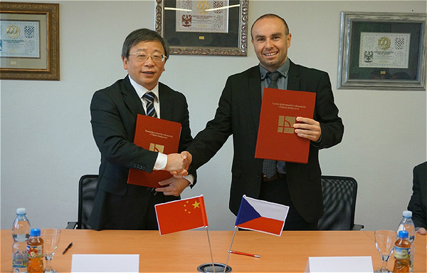 在捷克访问期间,我校代表团受到了布杰约维采技术与商业学院校长马雷科等的热情接待。双方分别介绍了学校的情况,并就学生交流、教师互访、学术交流、孔子学院合作共建等进行了深入的交流讨论,达成共识,签署了合作备忘录。钟晓敏与该校中国文化中心主任约瑟夫进行了亲切的交流,并参观了正在举办的中国建筑文化展览,钟晓敏还欣然题字留念:“祝愿中国文化中心越来越好,中捷友谊长存!”