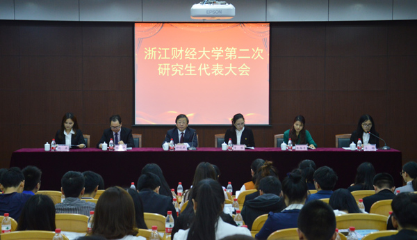 本网讯(通讯员 张梅芳)10月25日下午,校第二次研究生代表大会在下沙校区举行。校长钟晓敏出席大会并讲话。浙江工业大学、浙江理工大学、杭州电子科技大学、浙江工商大学、杭州师范大学、浙江农林大学、浙江传媒学院、中共浙江省委党校等兄弟高校研究生会代表到会祝贺。南京财经大学、安徽财经大学、山东财经大学等高校研究生会发来贺电。