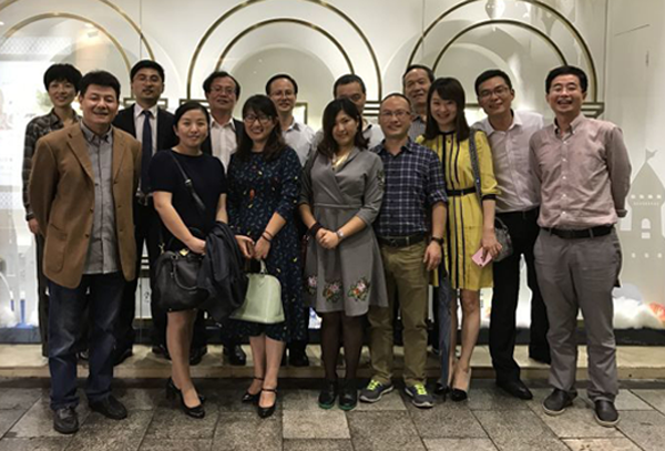 在校友企业浙江美麟文化发展有限公司,黄建新与校友代表进行了座谈交流。黄建新代表学校和校友总会向广大在甬校友传达亲切的问候,向此次当选第三届最美校友的李永平、孙科杰、许枫、包新民表示由衷的祝贺。黄建新向与会校友介绍了学校“十三五”发展规划,交流了2016年校友返校日筹备情况,并邀请广大校友届时返校,共抒同窗、师生之情,共筑财大梦。与会校友对黄建新一行的到访表示热烈欢迎,对母校一直以来的关心和支持表示由衷的感谢,大家分别介绍了各自在不同行业领域中的发展现状,并一致表示将继续支持并参与母校的建设发展,为母校添光加彩。