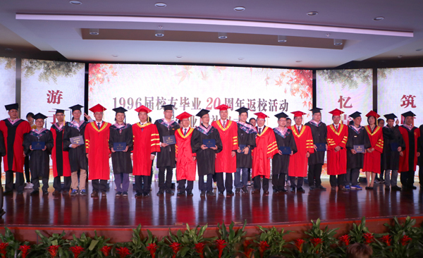 仪式最后,举行了学业成礼仪式。全体校领导和相关学院的院长共同为1996届校友扶正流苏并颁发珍藏版《浙江财经大学毕业证书》。校友们身着学位服,手捧证书,与母校老师合影留念,共叙着母校情、师生情、同窗情!