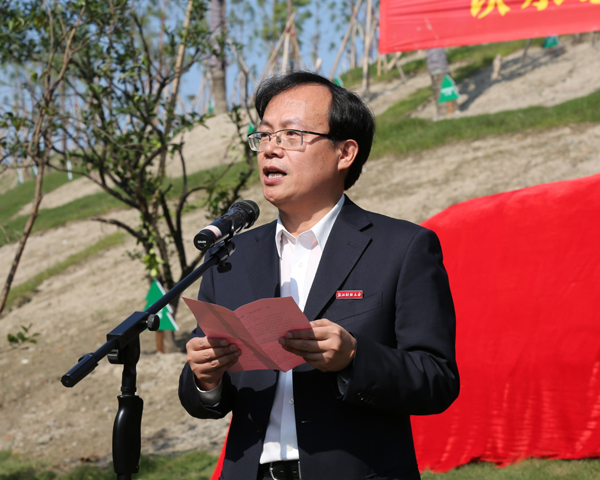 副校长、校友总会副会长兼秘书长黄建新首先致辞。他指出, “校友林”建设得到了各地校友会和广大校友的积极响应和大力支持。在历时一年多的时间里,学校培土成山,植树成林,校园景观初具规模,校友林也作了重新规划。承载着校友的重托,也象征着母校肩负着十年树木,百年树人的使命,校友林里的每棵树木都深深凝结着校友们感恩于心、铭志于树、寄情于林的情感,进一步营造了财大特色的校友文化氛围,为广大在校学子创造了良好的学习生活环境,寄托了校友感念母校的情怀。