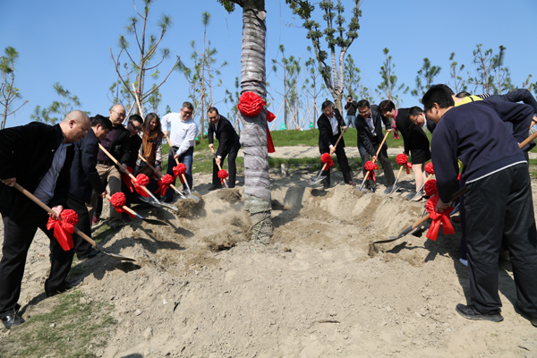 随后,校党委书记李金昌、校长钟晓敏与杭州校友会代表张将勇、上海校友会代表陈琳、萧山校友会代表滕国平、高新(滨江)校友会代表黄文建、75财政班代表陈时灿、01社保班代表唐洁以及王坚、薛文君、张洲锋、余俊仙、陈修、方利强、王坚刚等校友共同为“校友林”石揭幕,并一起培土种植师生情意树。
