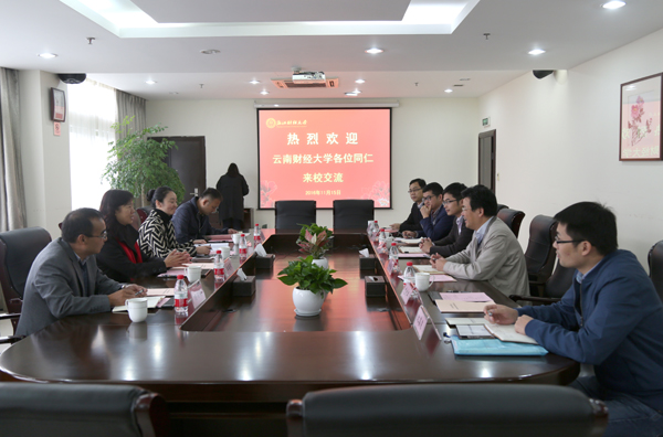 本网讯(通讯员 高灵)11月15日上午,云南财经大学副校长王晓萍一行4人来我校考察交流。校长钟晓敏、副校长励如孟对客人的到来表示热烈欢迎,并就高考制度改革、人才培养等方面交换了意见。