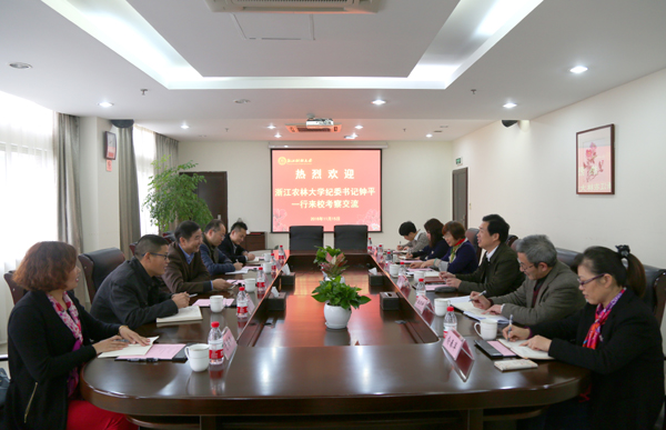 本网讯(通讯员 朱莹)11月15日下午,浙江农林大学纪委书记钟平一行5人来我校考察调研。校纪委书记陈金方热情接待并主持了交流会。校纪委办、审计处的负责人等参加了会议。