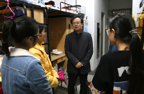 黄建新与考研学生亲切交谈,详细询问了同学们的考研准备情况,鼓励他们再接再厉,调整好状态,如愿考取自己心仪的高校。他还走访看望了我校两位孤儿同学,详细询问、了解了他们这学期在学习、生活等方面遇到的问题,代表学校给他们送去了御寒慰问品,勉励他们乐观积极,自强不息,刻苦学习。