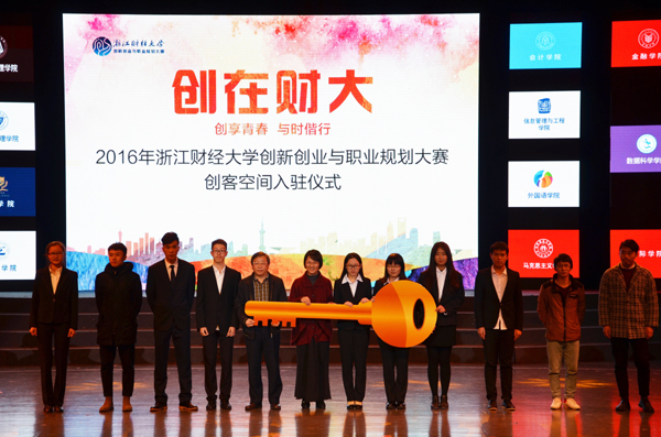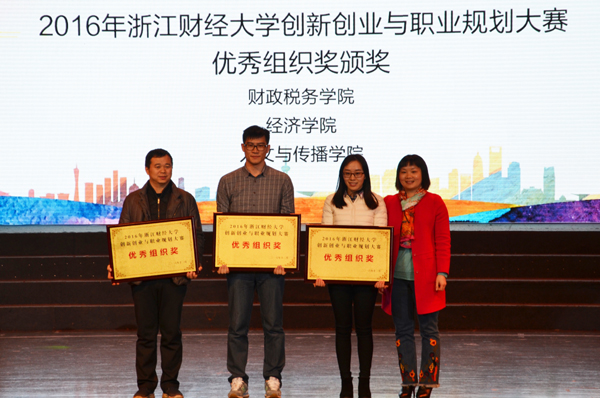 本网讯(通讯员 林健林)12月16日晚,学校2016创新创业与职业规划大赛总决赛暨颁奖典礼在文化中心举行。校长钟晓敏,全国财经院校创新创业协作组秘书长、上海财经大学创业学院执行副院长刘志阳、杭州市就业管理服务局创业指导处副处长徐华,和达高科、猿人公社、超校联盟等社会投资机构和众创空间代表以及学校相关职能部门负责人、各学院分管创新创业工作领导等出席活动。