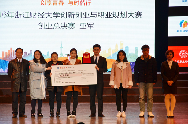 本次总决赛由“创青春”创业大赛全国主评委、“互联网+”创新创业大赛全国主评委钱迅雷,校友创新创业种子基金发起人、校友投资俱乐部主席、浙江普华天勤股权投资管理有限公司沈琴华,校友投资俱乐部主席、杭州诚和创业投资有限公司董事长陈修、校友投资俱乐部副秘书长、浙江蓝山投资有限公司总裁王柳琳以及校友企业杭州同家资本管理有限公司分析师唐连瑞担任评委。通过现场路演,“规划大师”以富有特色的构想、精彩的演示,获得评委和观众的青睐,一举夺得冠军,并获得“最佳表现奖”和“最佳人气奖”,“木木户外工作室”获得亚军。财税学院、经济学院、人文学院获得“优秀组织奖”。