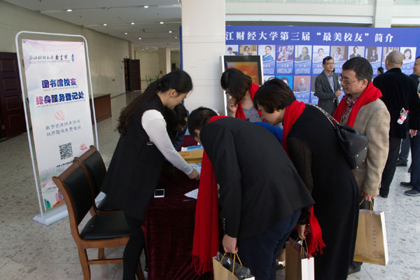 学校图书馆拥有丰富的文献信息资源,现有纸质藏书200万册、中外文纸本期刊2000余种,中外文数据库70余个,并自建“诺贝尔经济学奖文献馆”、“孙冶方经济科学奖文献馆”、“浙财文库”等特色数据库,可获取电子图书251万余种,中外文电子期刊各1万余种,博硕士学位论文205万余篇。母校图书馆的该项终身读者服务不仅为广大校友在今后的工作学习生活中利用文献资源提供了极大便利,同时也是对大家毕业后坚持读书的一种鼓励,更是倡导了一种理念:终身学习,服务社会,为校争光。