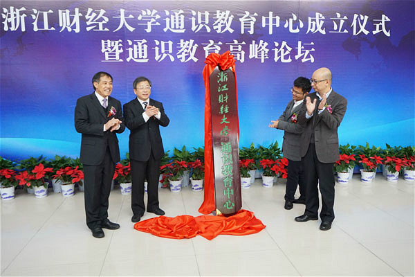 本网讯 11月23日下午,学校举行通识教育中心成立仪式。复旦大学通识教育中心主任孙向晨教授、西南财经大学人文(通识)学院院长杨海洋教授、上海财经大学教务处副处长傅川教授、复旦大学通识教育中心办公室刘丽华主任、我校校长钟晓敏、校通识教育指导委员会全体成员以及各通识课程负责人等50余名专家学者、教师出席揭牌仪式。